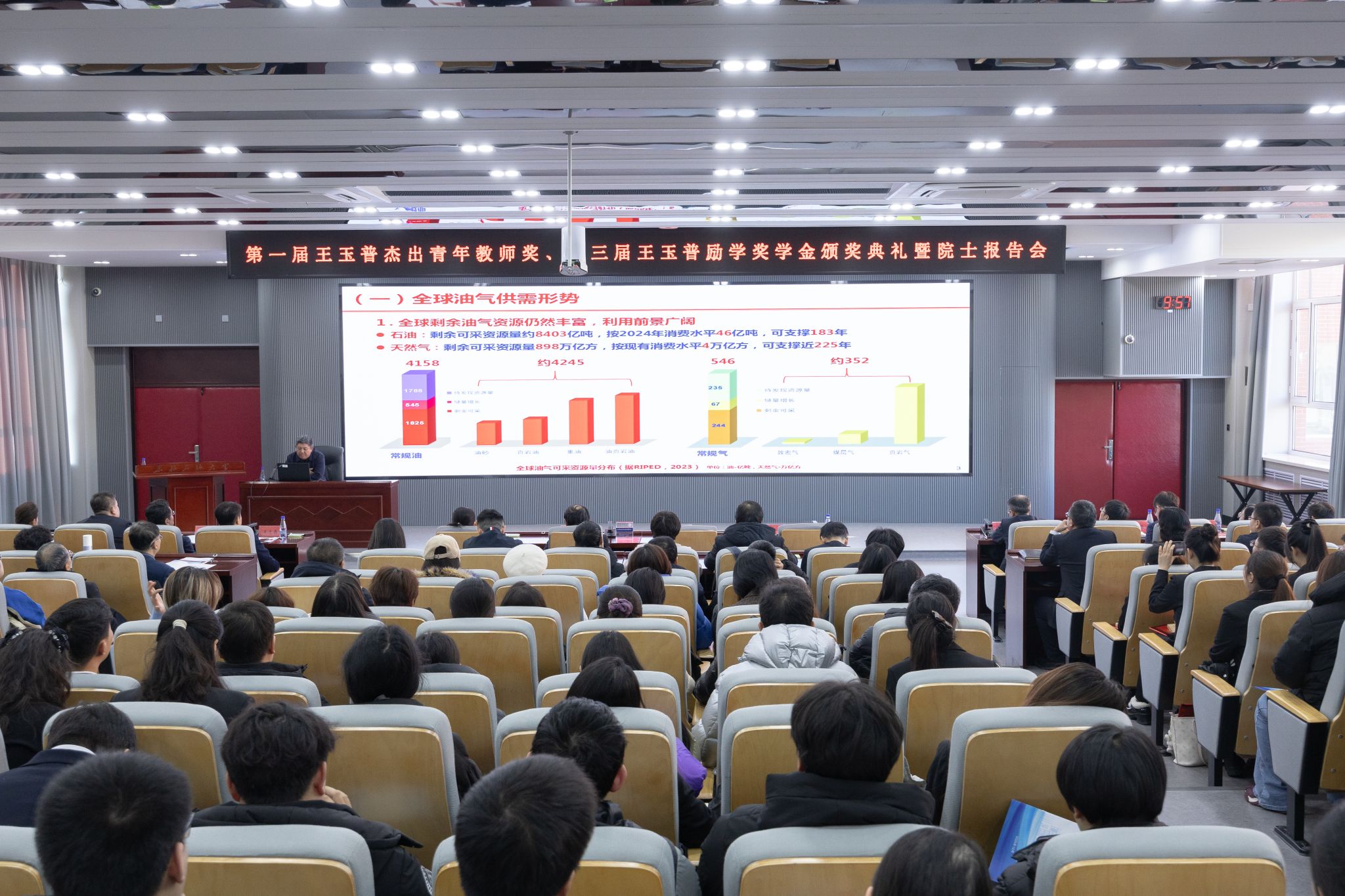 会议在庄严的国歌声中拉开帷幕。通过观看王玉普励学奖学金宣传片,现场师生重温王玉普院士深耕能源勘探开发一线、矢志报国的赤子情怀,感受其心系母校发展、关爱青年成长的无疆大爱,了解往届获奖者传承初心、砥砺奋进的成长轨迹。
