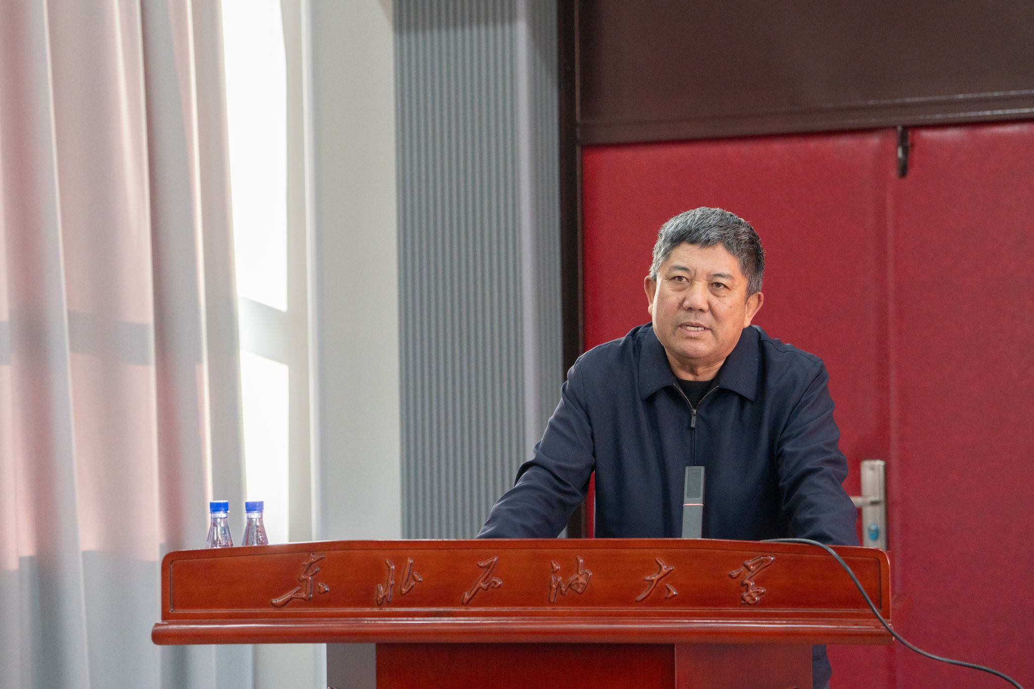 付晓飞讲话。他指出,王玉普院士爱国奉献、求真笃实、能源报国的精神是东油宝贵财富,系列奖项的设立是其精神传承的生动实践,更是立德树人的重要载体。他号召全体东油师生以王玉普院士为标杆,以获奖者为榜样,坚守能源报国初心、厚植“能源报国”赤子情怀、锤炼“求真笃实”治学本领、践行“实干担当”行动自觉,在服务国家能源安全战略中展现东油担当、贡献东油力量。