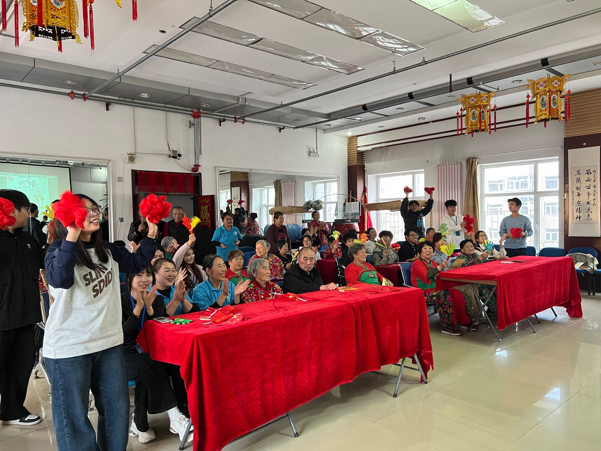 得知师生到访,养老院老人们提前准备了表演节目,以热情相迎。随后,我校学子与老人们积极互动,通过文艺表演、手工交流等形式传递心意,活动现场氛围温馨融洽。
