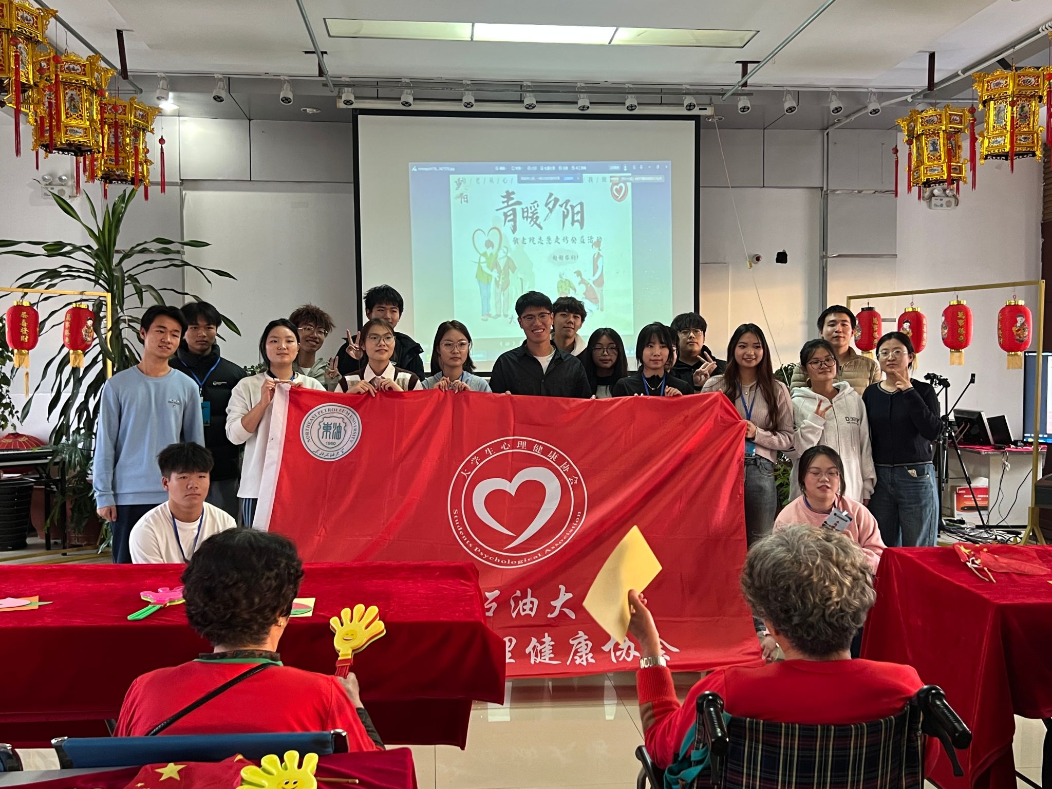 为弘扬中华民族敬老爱老传统美德,发挥实践育人作用,在重阳节来临之际,10月25日,心理健康教育中心教师王忠浩和陈蕾带领大学生心理健康协会学子赴府民养老院,与老人们开展慰问交流活动。